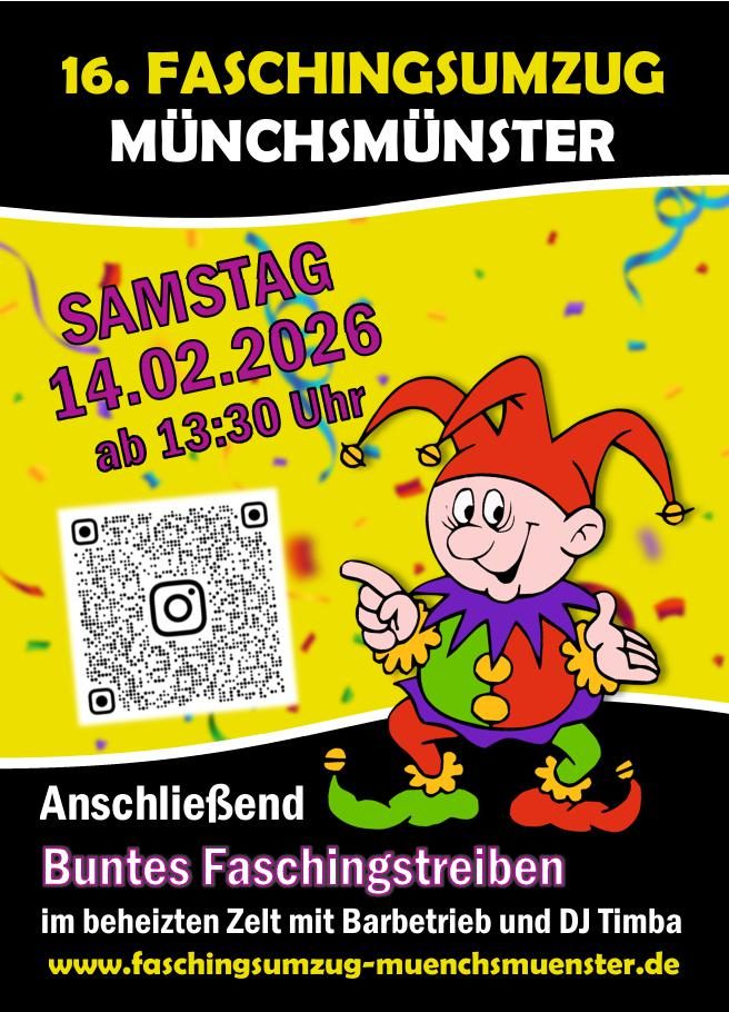 Bunt, fröhlich, laut – so feiern wir Fasching in Münchsmünster! Unser Verein bringt jedes Jahr Groß und Klein zusammen, um gemeinsam die fünfte Jahreszeit zu genießen. Auf unserer Homepage findet ihr alles rund um Termine, Anmeldung und Highlights des Umzugs.